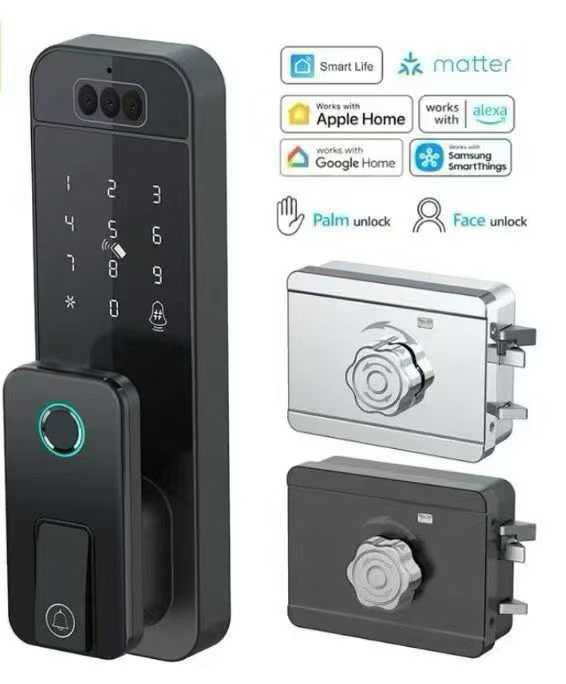 Wireless Tuya App Waterproof Smart Electric RIM Lock Set for Outside Door Use with Dual Fingerprint Open Door by Card and Key